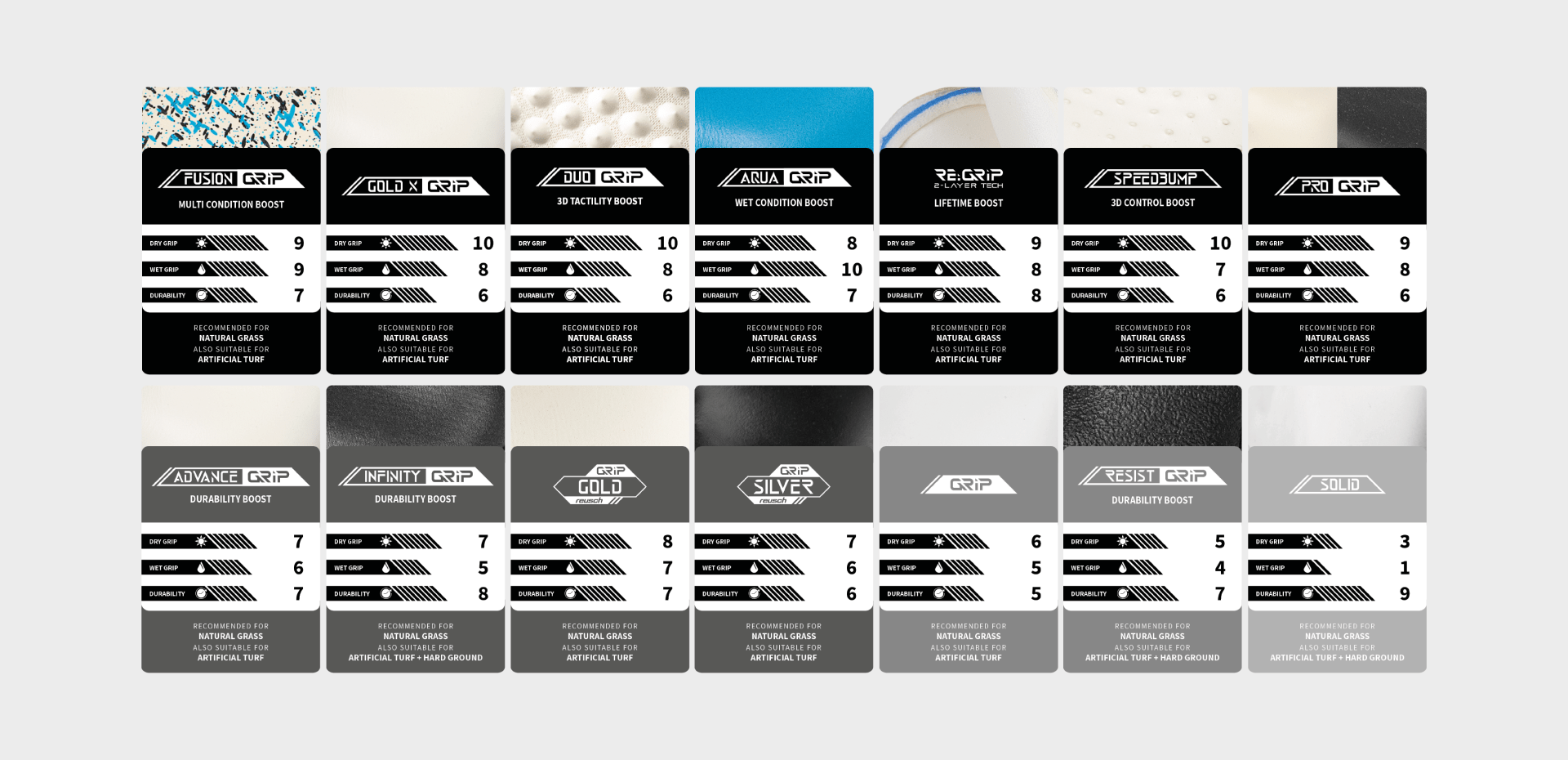 Re:grip-Latex verleiht den Torwarthandschuhen zusätzliche Lebensdauer. Dank des innovativen, zweischichtigen Latexsystems bieten Re:grip-Handschuhe professionellen Grip und ultimative Haltbarkeit. Auch wenn die erste Schicht an Latex von Weltklasseniveau durch intensiven Gebrauch auf dem Spielfeld abgetragen ist, können die Handschuhe dank der darunter liegenden, äußerst strapazierfähigen Reusch Infinity-Latex weiter für Spiele und Trainings verwendet werden.