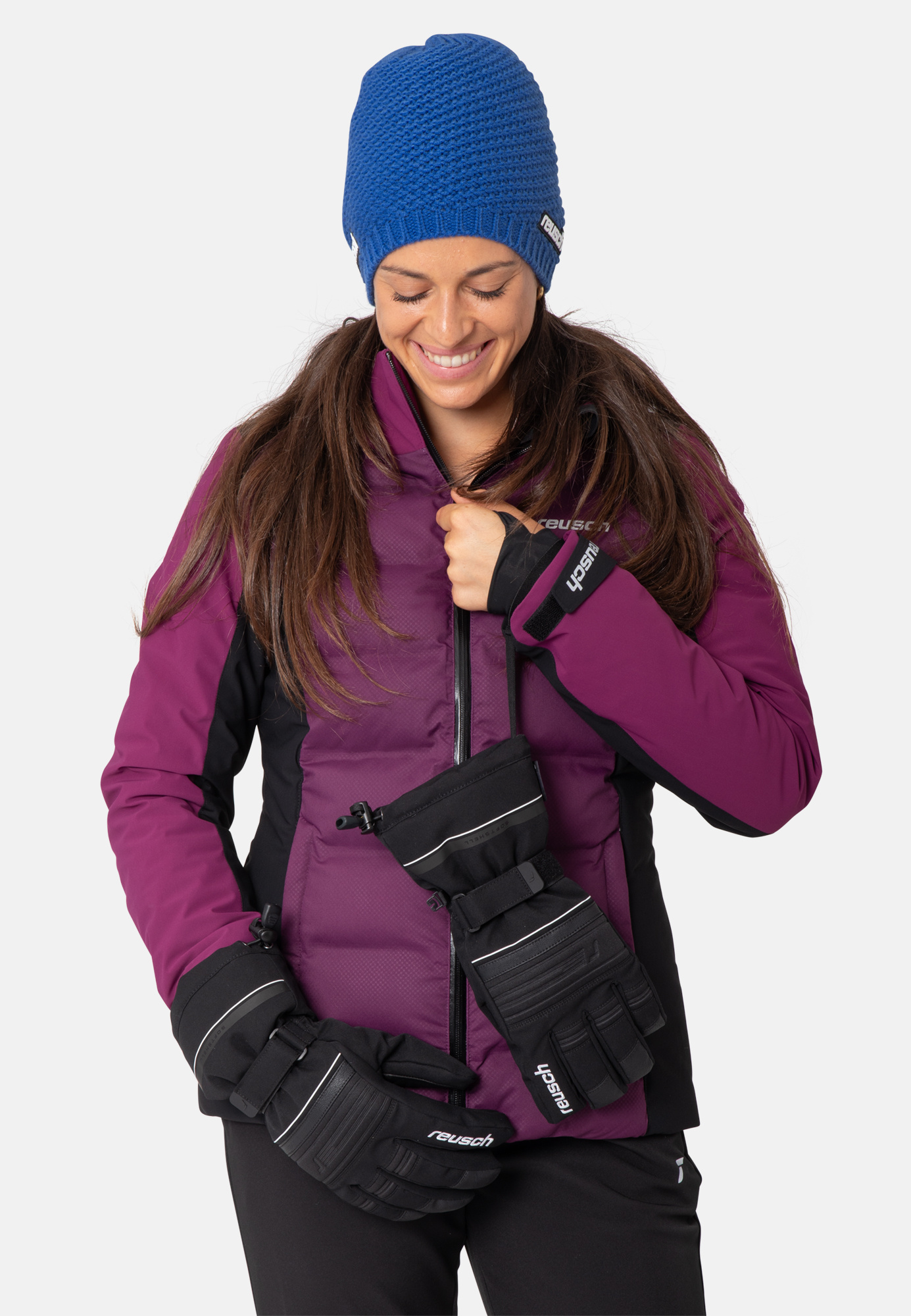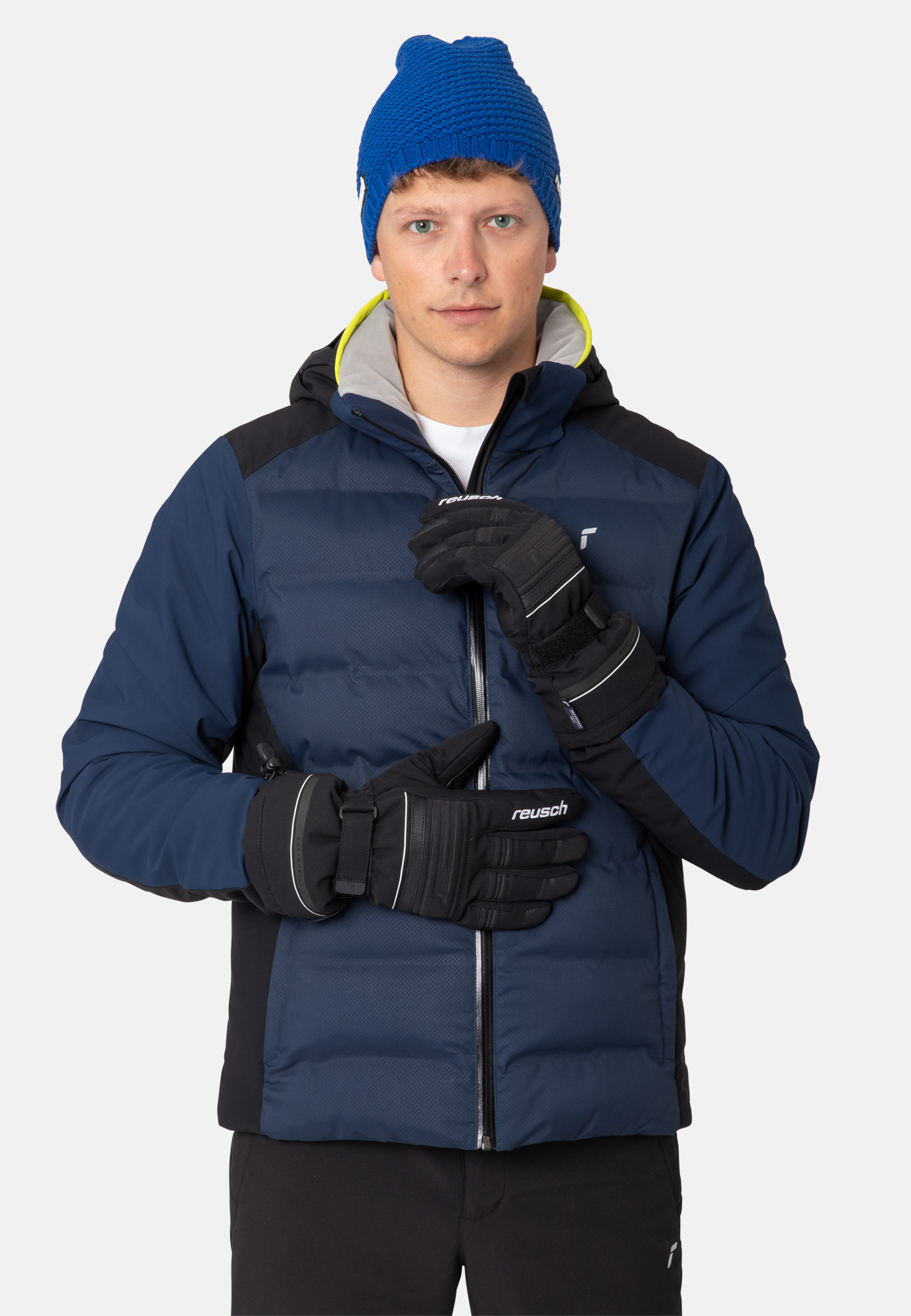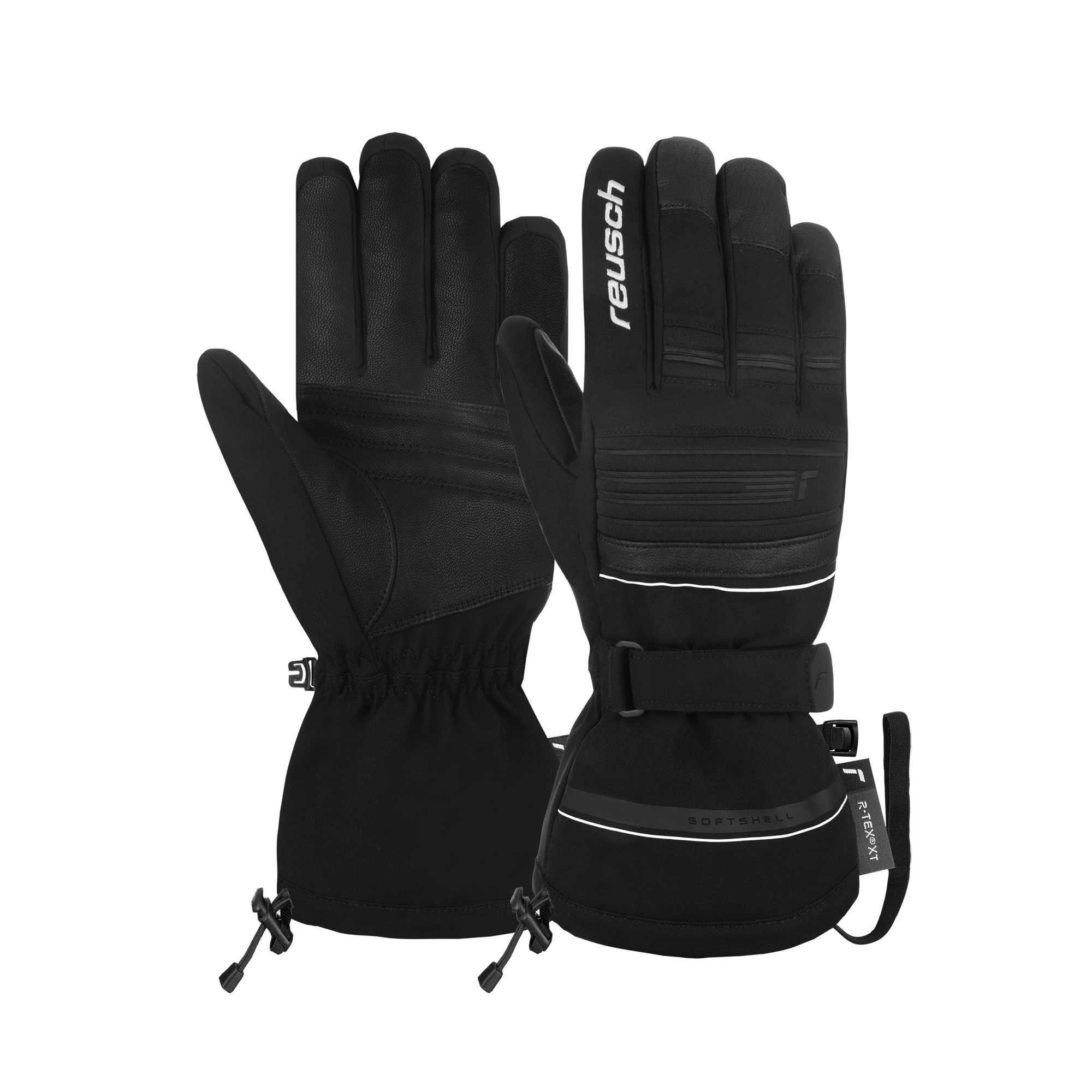 Wasserdichter Softshell-Handschuh mit langer Stulpe, verstellbarem Bündchen und intelligentem Stoppersystem, um den Schnee außerhalb des Handschuhs zu halten.Materialzusammenfassung